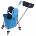 1 большое ведро на 20 л, разделенное съемной перегородкой на 2 части., Система отжима для петельных тряпок и МОПов., Габариты (ВхШхГ) - 67х27х63 см.