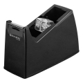 Тип диспенсера: настольный, Максимальная ширина ленты: 26 мм, Наличие клейкой ленты в комплекте: да, Цвет: черный, Диаметр сердечника ленты: 25 мм, Особенности: основание с нескользящим покрытием, стальной нож для отрезания ленты, Материал диспенсера: пластик, Длина: 14 мм, Ширина: 5.3 мм, Высота: 8 мм, Упаковка: картонная коробка