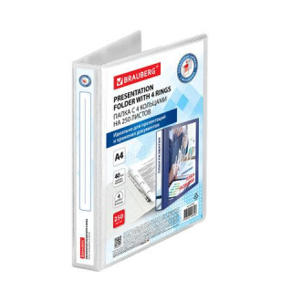 Папка ПАНОРАМА на 4 кольцах, ПРОЧНАЯ, картон/ПВХ, BRAUBERG Office, БЕЛАЯ,40 мм, до 25