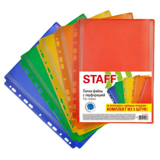 Папки-файлы с перфорацией БОЛЬШОЙ ВМЕСТИМОСТИ до 250 листов, ЦВЕТНЫЕ, А4, КОМПЛЕКТ 5 шт., STAFF 274081