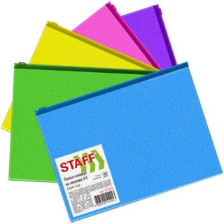 Папка-конверт на молнии А4 (230х333 мм), ПВХ, цвет ассорти с блестками, 0,15 мм, STAFF 274079