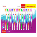 Тип товара: зубная щетка, Жесткость щетины: средняя, Прорезиненная вставка на рукоятке : да, Количество в упаковке: 12 шт., Серия: DENT, Возрастная группа: взрослая