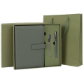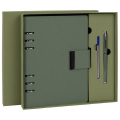 Серия: Style, Количество предметов в наборе: 3 шт., Обложка предметов набора: под гладкую кожу, Комплектация: недатированный ежедневник A5, подарочная коробка, ручка, Цвет среза: нет, Цвет: зеленый, Подходит для персонализации: горячее тиснение, Тип ежедневника: недатированный, Подарочная коробка, покрытая дизайнерской бумагой: да, Внутри подарочной коробки: ложемент из ЭВА (EVA)