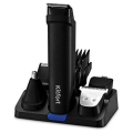 Назначение: для бороды, для волос, для носа и ушей, для тела, Максимальная длина стрижки: 20 мм, Минимальная длина стрижки: 0.5 мм, Количество насадок для волос: 3 шт., Количество насадок для бороды: 2 шт., Способ регулировки длины: регулировка, смена насадок, Число установок длины: 20 шт, Ширина ножа: 40 мм, Материал лезвий: нержавеющая сталь, Мощность: 5 Вт, Индикация зарядки: да, Идикатор установки длины: да, Питание: от аккумулятора, Время работы от аккумулятора: 60 мин, Время зарядки: 2 час, Материал корпуса: пластик, Цвет корпуса: черный/синий, Высота: 161 мм, Ширина: 46 мм, Глубина: 37 мм, Вес изделия: 320 г