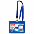 Тип бейджа: классический, Тип крепления: клип, лента, Положение: вертикальное, Формат: малый, Длина вкладыша: 85 мм, Ширина вкладыша: 55 мм, Длина бейджа: 101 мм, Ширина бейджа: 58 мм, Цвет крепления: синий, Материал корпуса: твердый пластик, Цвет корпуса: прозрачный, Длина ленты/шнурка: 45 см, Длина нити в держателе-рулетке : 0 см, Количество бейджиков в упаковке: 10 шт