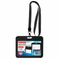 Тип бейджа: слайдер, Тип крепления: лента, Положение: горизонтальное, Количество в комплекте: 1 шт., Размер вкладыша (ДхШ): 54х85 мм, Размер бейджа (ДхШ): 79х100 мм, Серия: EXTRA, Цвет крепления: черный, Материал корпуса: твердый пластик, Цвет корпуса: черный, Длина ленты/шнурка: 45 см, Наличие картонной вставки: да