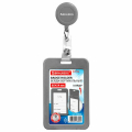 Тип бейджа: слайдер, Тип крепления: держатель с рулеткой, Положение: вертикальное, Количество в комплекте: 1 шт., Размер вкладыша (ДхШ): 85х54 мм, Размер бейджа (ДхШ): 110х67 мм, Серия: EXTRA, Цвет крепления: серый, Материал корпуса: твердый пластик, Цвет корпуса: серый, Длина нити в держателе-рулетке: 70 см, Наличие картонной вставки: да