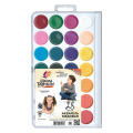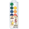 Количество цветов в наборе: 12, Добавка в основу: гуммиарабика, Отделение для кисточки: да, Форма кюветов: круглая, Упаковка: пластиковая коробка с европодвесом