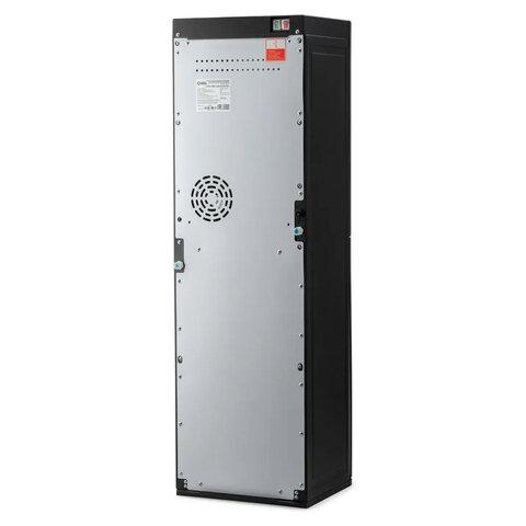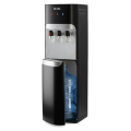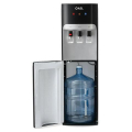 Чёрный корпус с серебристыми вставками выглядит современно и легко вписывается в любой интерьер. Установка бутыли производится снизу, что делает процесс более аккуратным и удобным. Благодаря металлическому каркасу конструкция прочная и долговечная.