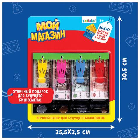Хотите научить ребёнка правильно обращаться с деньгами? Или сделать сюжетно-ролевые игры более реалистичными? Не проблема! Подарите малышу набор «Мой магазин - касса». Польза от игр с набором: 1. Обучение счёту и понимание ценности денег. Ребёнок научится считать, складывать и вычитать, понимать стоимость товаров и услуг. 2. Финансовая грамотность. Раннее знакомство с основами экономики поможет в будущем более осознанно обращаться с деньгами. 3. Социальные навыки. Взаимодействие с друзьями или родителями в игре развивает коммуникабельность, умение вести переговоры и принимать решения. В наборе: 1. Купюры; 2. Монеты; 3. Пластиковая касса; 4. 2 кредитные карточки из картона.