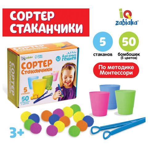 Описание ZABIAKA Сортер-стаканчики Цветные бомбошки с пинцетом, 4288645